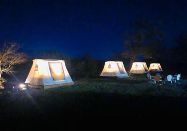 - Located 5 miles from Main Street. We have 4 Glamping Tents, 2 Cabins, Bunk House and 4 RV spaces for rent.